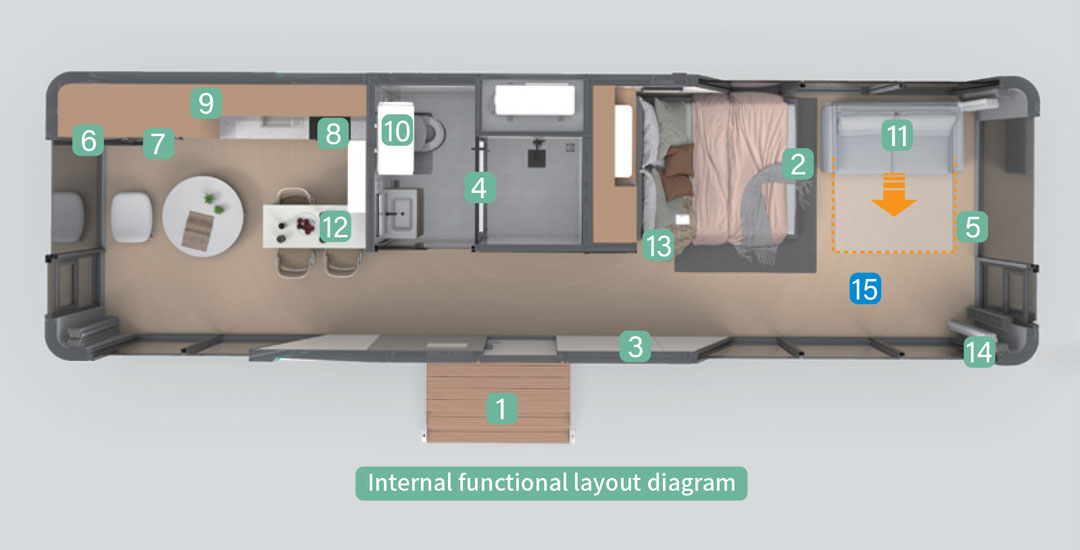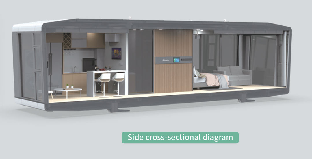 Aussie Dream MX-FD01K, set the sense of the future and the sense of science and technology in one of the fashionable appearance, the whole galvanized steel frame, with aluminum alloy shell, elegant atmosphere, touch full smart home system, information entertainment at a touch. Equipped with basic living facilities, the panoramic balcony is a multi-directional “zero distance” contact with nature.